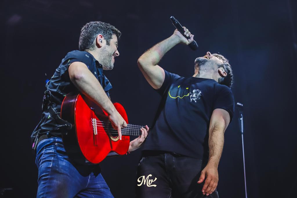En la parte final, Estopa ha recuperado la potencia sin abandonar el fondo rumbero con “Partiendo la pana”, “Camiseta de rock and roll”, con David y José cantando encima de un Seat Panda que han sacado al escenario, “Me falta el aliento”, “La Ranchera” y “Fuente de energía”.